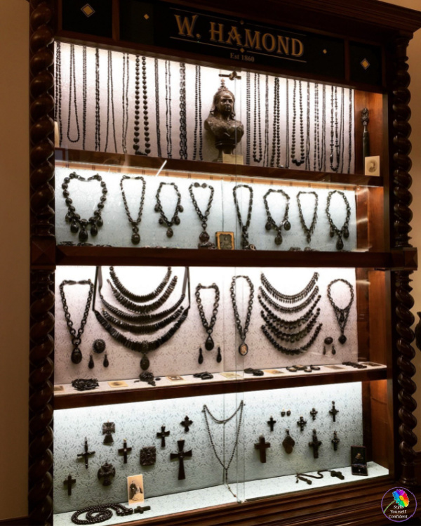 After Albert's death, she frequently wore black jet jewelry, a gemstone from Yorkshire, but this is rarely used nowadays except in gothic jewelry. You can visit the museum displays of jet at the Original Whitby Jet Shop in Whitby, Yorkshire.